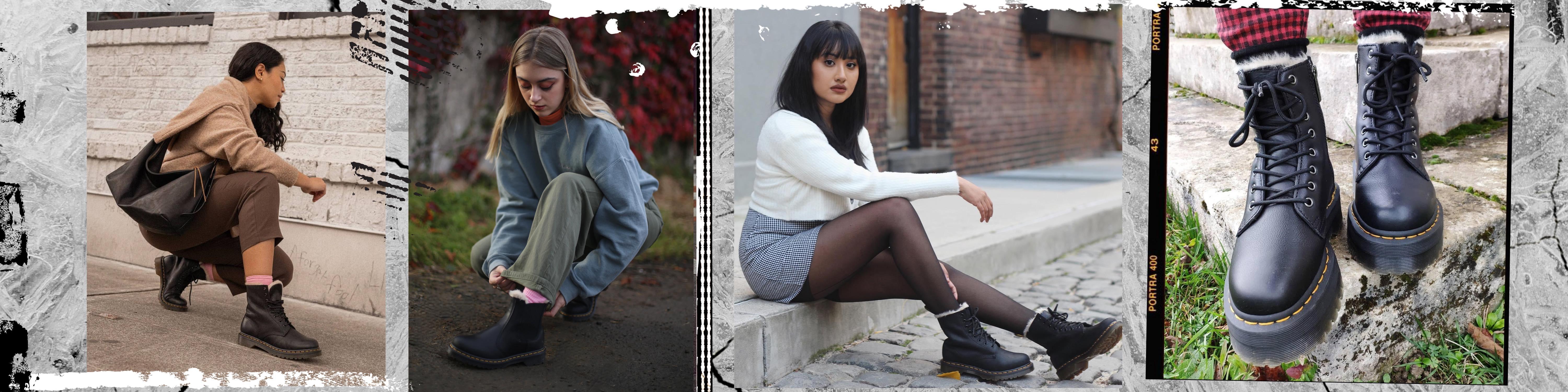 obuwie czarno-białe włosy F28B293 1461 Wacko Maria Oksfordzie z włosiem kobiety Dr. Martens